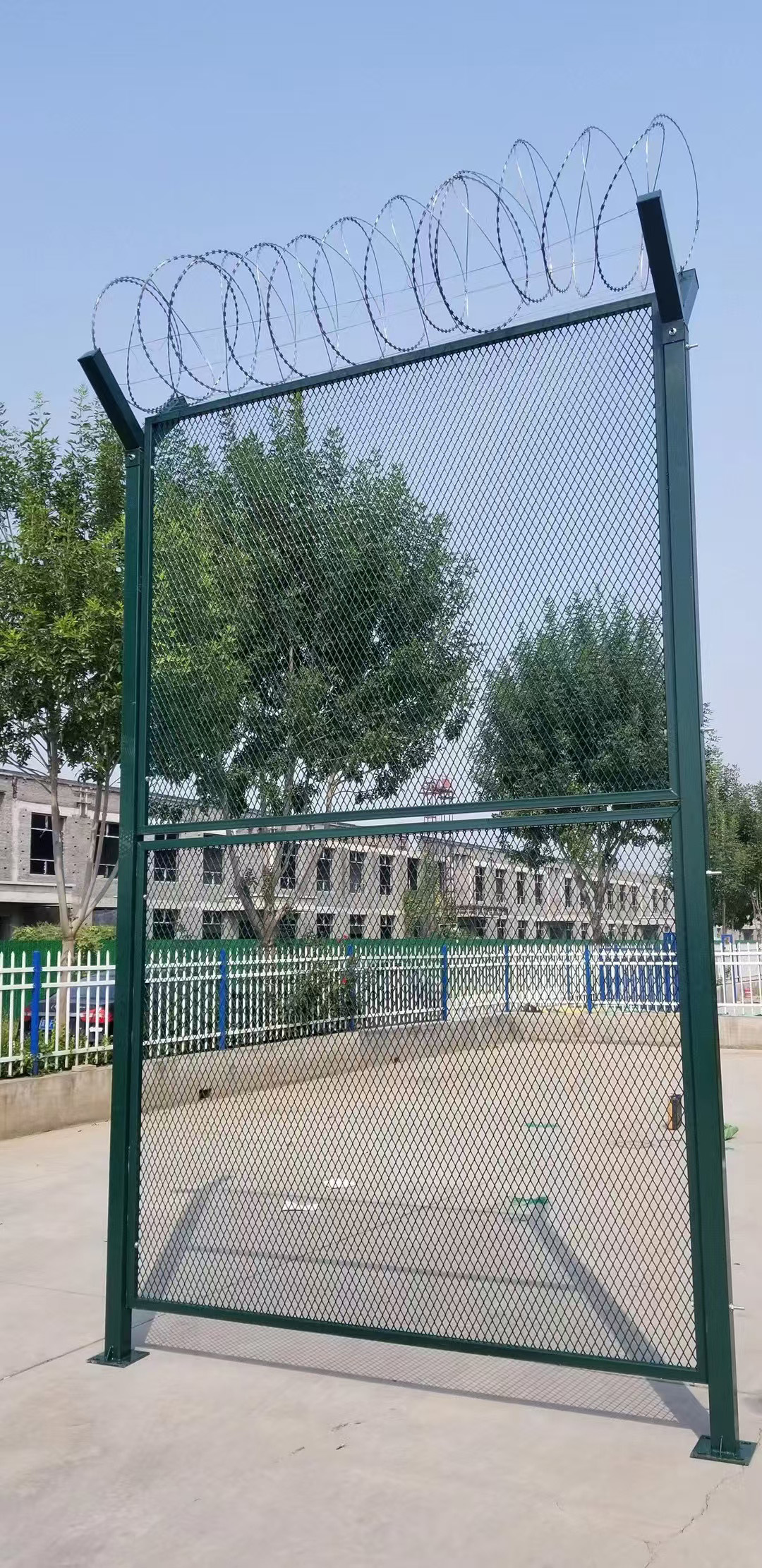 机场护栏网又称作机场隔离栅、Y型安全防御护网,是由V型支架立柱,加强型焊接片网,安全防盗连接件和热镀锌刀片刺网组成强度和安全防御性级别很高。近年来,被**应用在机场,军事基地等高安全场所。